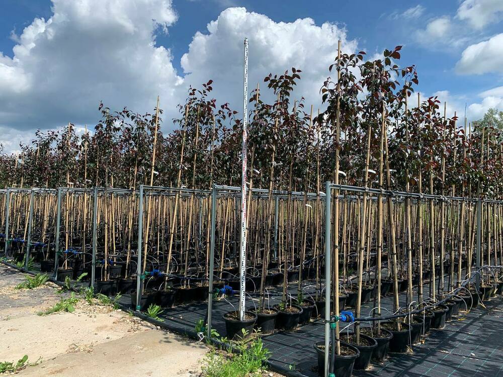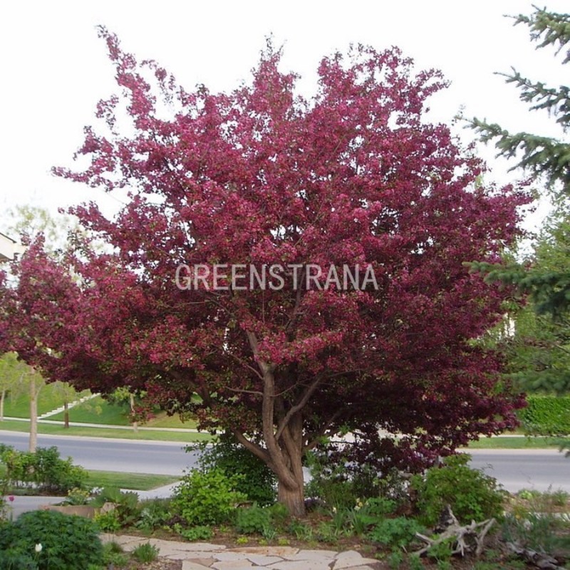 Дерево, растущее с умеренной быстротой. Максимальная высота, которой оно может достичь, 4-6 м. Имеет округлую раскидистую крону, диаметр ее составляет от 4 до 5 метров. Овальные листья длиной от 8 до 12 см, распускаясь, имеют пурпурно-красный оттенок. В летний период на солнце могут стать насыщенно-фиолетовыми, а в тени приобретают пурпурно-зеленый оттенок. Осенью становятся бордово-коричневыми. Очень сильно цветет в мае, до того, как распустится листва. Появляются большие темно-красные бутоны, что затем распускаются в малиновые или густо-розовые простые цветки диаметром 3-4 см. От них исходит удивительный аромат. В сентябре покрывается темно-красными плодами с незначительным восковым налетом.