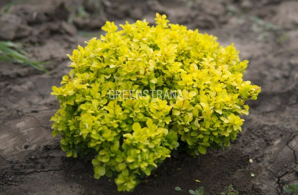 Уникальный новый карликовый жёлтый барбарис с плотной шарообразной формой кроны, достигающий не более чем 0,7м в высоту и 1м в диаметре. Листья мелкие, лимонно-желтые, на солнце окраска листвы очень интенсивная, а в осеннее время приобретают кармино-красный окрас. Цветет в конце мая – начале июня мелкими желтыми цветами, собранными в кистевидные соцветия по 2-5 шт. Плоды кораллово-красные, эллиптические несъедобные ягоды, созревают в августе-сентябре и сохраняются на ветвях на протяжении долгосрочного периода времени.