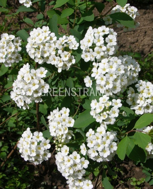 Представляет собой очень крупный кустарник, достигающий высоты 2 м с широкой, каскадной формы кроной, образуемой изгибающимися дугообразным ветвями с крупными многолопастными темно-зелеными листьями. Цветет растение несколько недель, покрывая белоснежными мелкими соцветьями полностью все побеги, склоняющиеся до земли. При хорошем уходе иногда спирея цветет еще раз в конце лета, после чего образуются плоды. Продажа растений для посадки осуществляется в контейнерах. Это позволяет аккуратно и безболезненно пересаживать спирею.