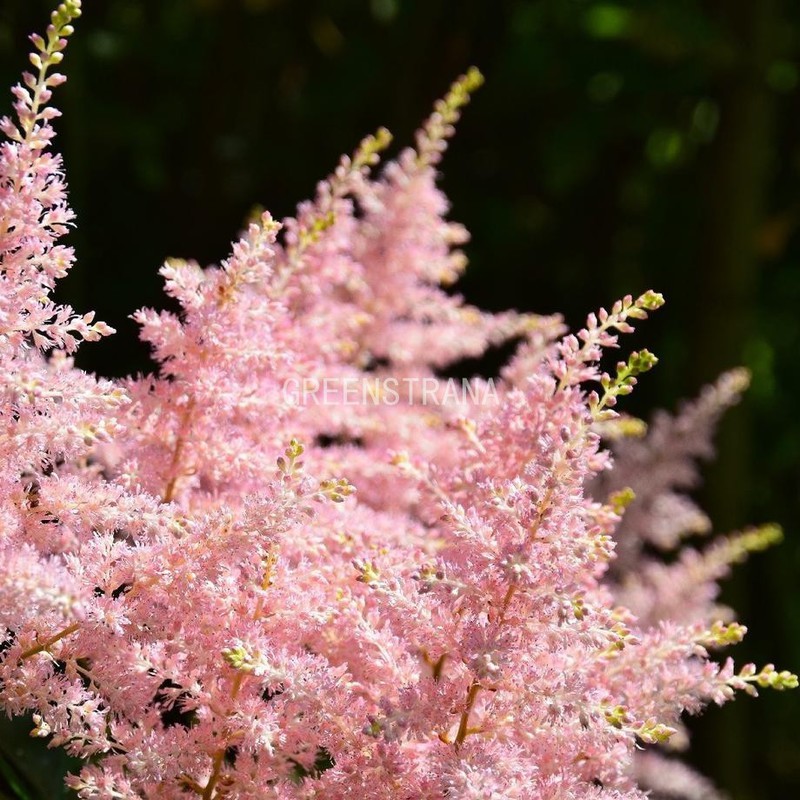 Стебли астильбы японской Peach Blossom прямые, жесткие и пушистые. Они украшены соцветиями из нежных цветов белого, розового или красного цвета, собранными в широкие нежные плотные соцветия.