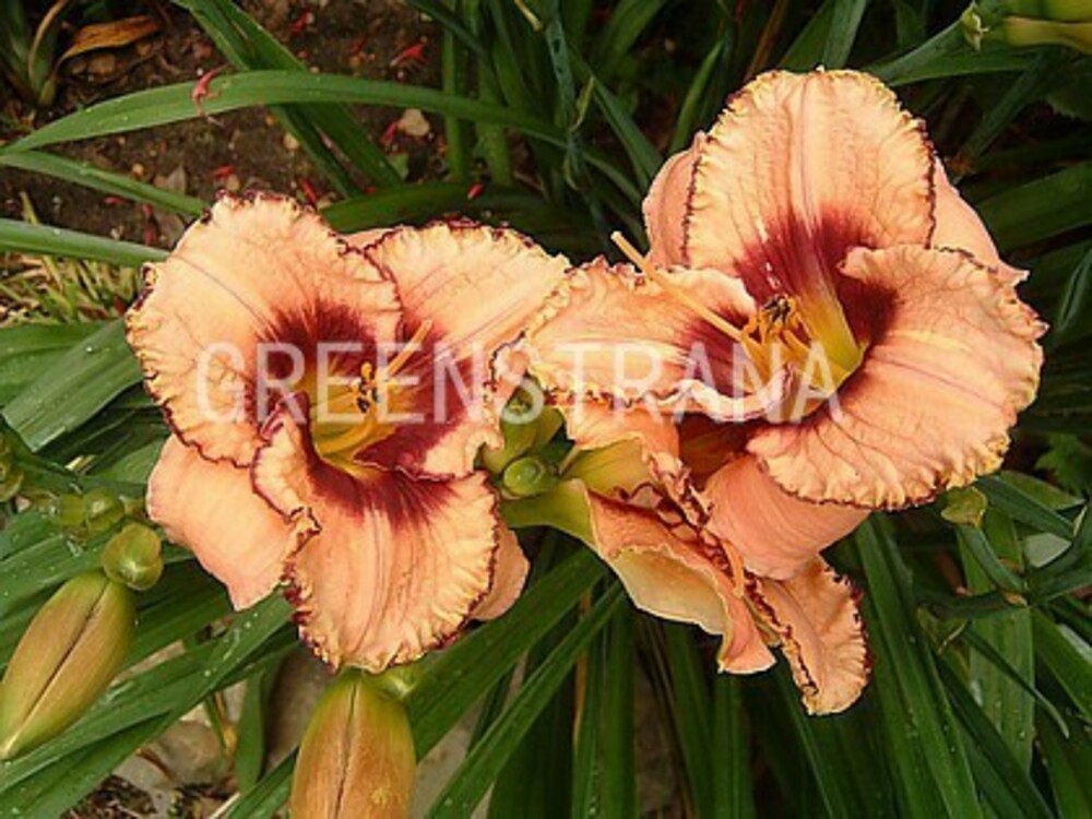 Высота лилейника  60 см. Цветок 13 см кремовый с розовым оттенком, сливового цвета глаз и кайма на гофрированных внутренних лепестках. Зеленое горло. Полувечнозеленый. Срок цветения: средний (начало августа).Предпочитают открытые, хорошо освещенные участки. Могут выносить небольшое затенение, но цветение при этом менее обильное. Почва подходит глинистая, с добавлением перегноя. Лилейники находятсамое широкое применение:солитерные посадки среди газона, около водоема; групповые посадки с различными многолетниками. Эффектны лилейники различных сортов в одной группе, подобранные по высоте и срокам цветения. Подходят для срезки.