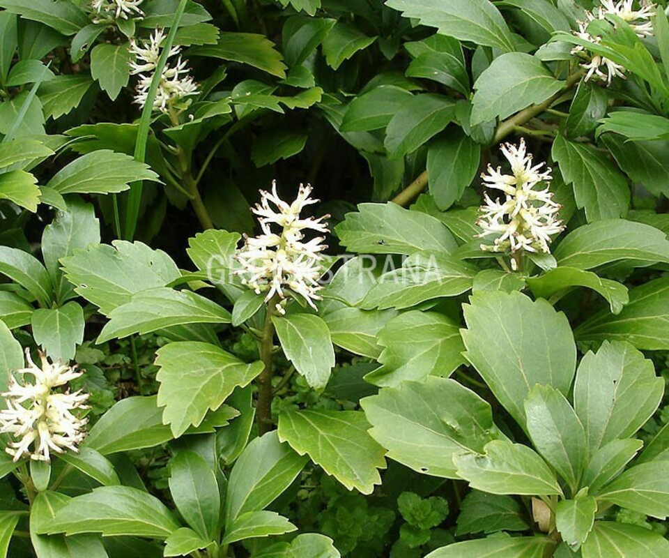 Пахизандра верхушечная (Pachysandraterminalis) – медленнорастущее вечнозеленое растение из семейства самшитовых с сильно развитым корневищем.Это полукустарник с гибкими недревеснеющими побегами, достигающий 30-35 сантиметров в высоту, который стелется по земле, создавая плотный зеленый покров, который остается неизменным на протяжении всего года. Пахизандра верхушечная не переносит прямых солнечных лучей, предпочитает тень. Если посадить ее на солнечном месте, то листья поблекнут. Растение требует умеренных поливов только тогда, когда укореняется. Зимой температура не должна подниматься выше 13 градусов тепла. Легко переносит суровые морозы (до 30 градусов). Не выносит ветреную погоду. Для посадки лучше брать дерновую и листовую почву, смешанную с песком в соотношении 2:1:1. Подкармливать растение не нужно. Рыхления не любит, желательно почву возле нее притоптать. Болезни и вредители пахизандру не поражают.