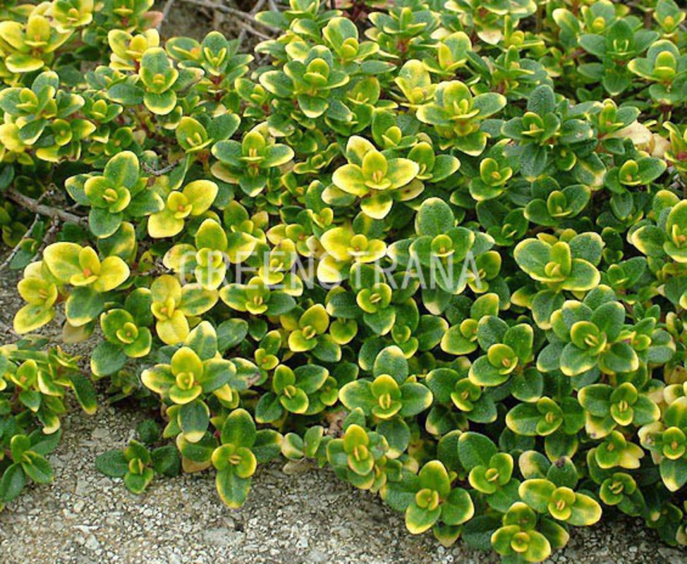 Привлекательное многолетнее травянистое растение, относящееся к семейству Яснотковые (Lamiaceae). Высота листвы у взрослого растения: от 10 до 15 см., высота цветоносов: от 15 до 30 см.; ширина взрослого растения: до 45 см. Листья небольшие, овальные или яйцевидные, насыщенно-зелёные с жёлтыми кончиками, иногда также с неравномерно расположенными жёлтыми пятнами (с течением времени пятна на листьях постепенно выцветают до светло-жёлтых). Кроме того, листья имеют специфический, лимонный аромат, который особенно заметен при растирании листочков. Цветки лиловые; собраны в соцветия на прямостоячих цветоносах. Цветки, как и листочки, обладают специфическим лимонным ароматом.Тимьян наиболее декоративно выглядит и лучше всего цветёт если растёт на солнечных местах. Выносит полутень., предпочитает хорошо дренированную, нейтральную или слабощелочную, плодородную почву. Растение достаточно засухоустойчиво. Не любит длительный застой воды или заболачивание почвы.Рекомендуется для одиночных или групповых посадок в рокариях, альпинариях, невысоких ландшафтных композициях, на газонах и склонах. Кроме того, данное растение обладает некоторыми лекарственными свойствами.